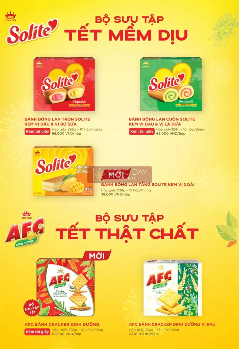 Mang đến mùa Tết Bính Ngọ 2026 này, hãng mang đến bộ sưu tập tết với đa dạng list sản phẩm như hộp quà Lộc, bánh cosy, AFC, Solite, Oreo, bánh Lu, Dairy milk, Socola… Năm nay, Mondelez Kinh Đô tiếp tục cho ra mắt bộ quà Tết Kinh Đô Lộc 1 và 2 với mỗi set quà chứa nhiều loại bánh khác nhau được chọn lọc với thông điệp “Đầu năm đón Lộc, cả năm đầy Lộc” để mang Lộc đến các gia đình vào dịp tết. Hơn thế hãng còn muốn lan tỏa niềm hi vọng về một năm mới trọn vẹn và no ấm hơn, là set quà tặng tinh tế, cao cấp và đầy ý nghĩa để dành tặng nhau dịp tết cho người thân, về trưng ngày tết, doanh nghiệp lựa chọn để tặng nhân viên, công nhân, khách hàng…